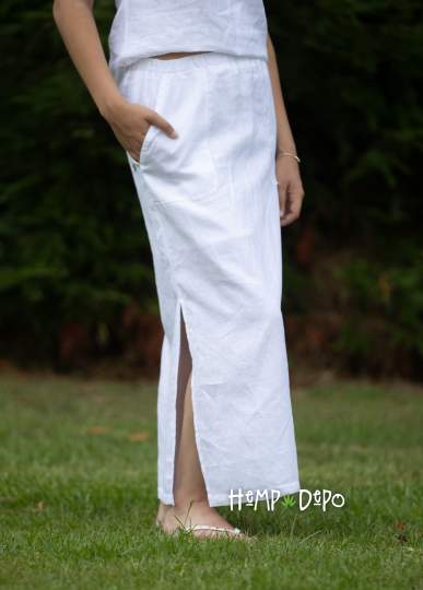 Add a touch of bohemian flair to your wardrobe with our versatile hemp skirt. This feminine design features cute side splits, making it effortlessly stylish for any occasion. Dress it up or down to suit your mood and make a statement with sustainable, eco-friendly fashion.